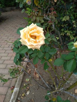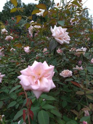 休日に公園へ行ってきました。 10月というのもありハロウィンイベントを行っていました。 この公園ではとても多くの植物が育っていました。 道中、花壇や鉢などの植物ラベルに名前が書かれていてものすごく多い種類があり驚きました。 薔薇が特に多く咲いていていました。